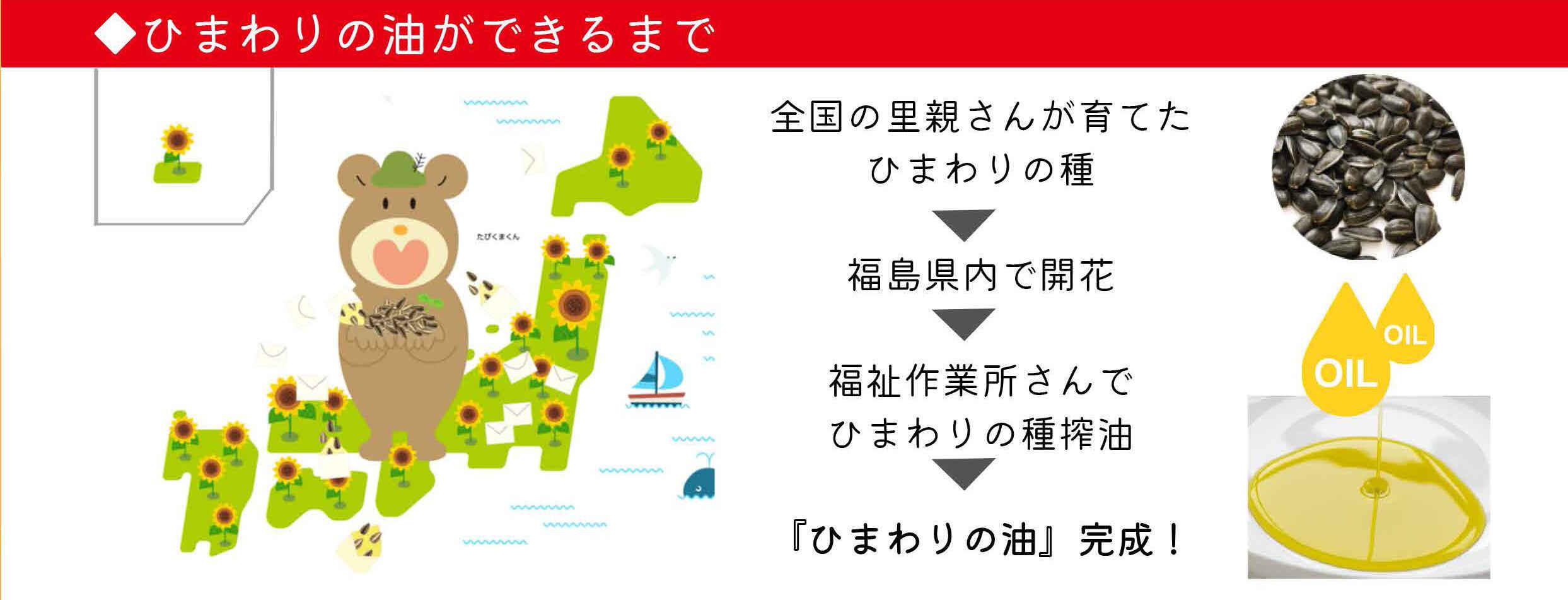 そのひまわりから採れた種を、福祉作業所で搾油した「ひまわり油」を活用しています!